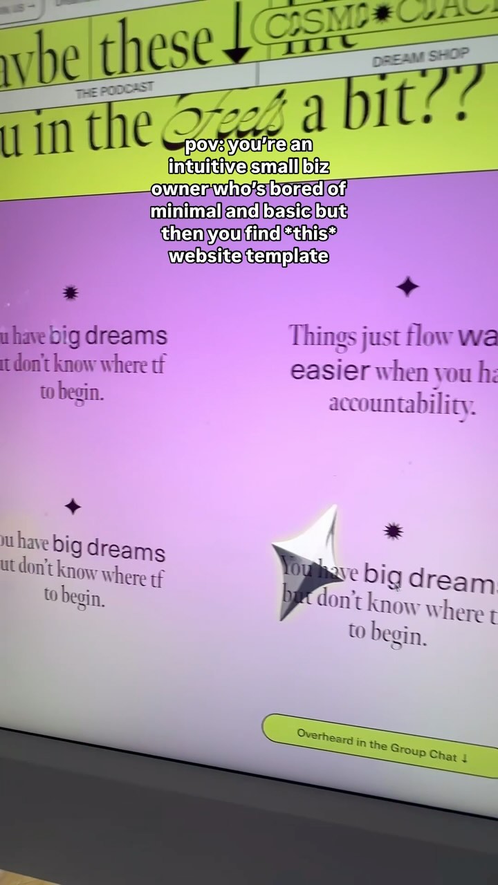 The 'full Katie' experience. Shopify or Squarespace. You are my special interest for a week or two. I'm a conduit to your wildest, most layered visions - finally bringing them to life. Brand, web, socials, whatever.