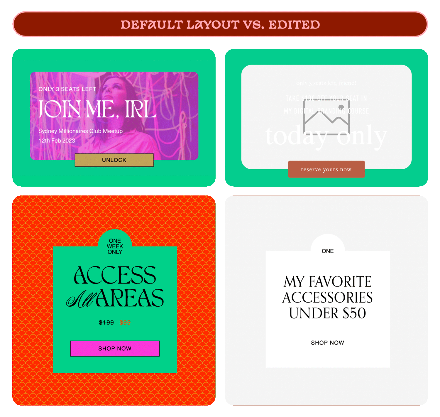 Layouts are one of the best features of Flodesk. However, if you spend a little more time with them, you'll realise you can actually get some really unique looks out of each one. Each layout comes with varying levels of customisability.