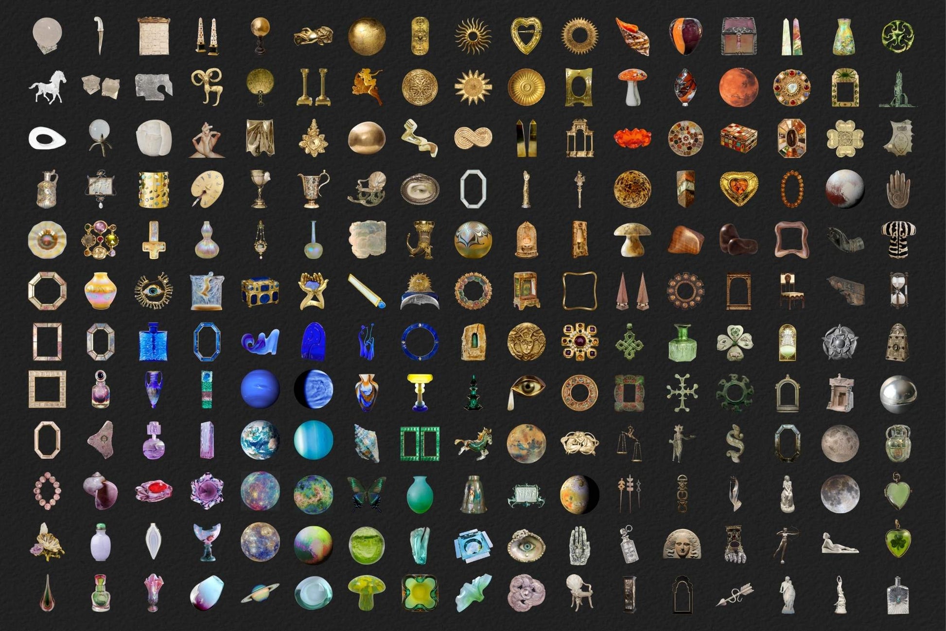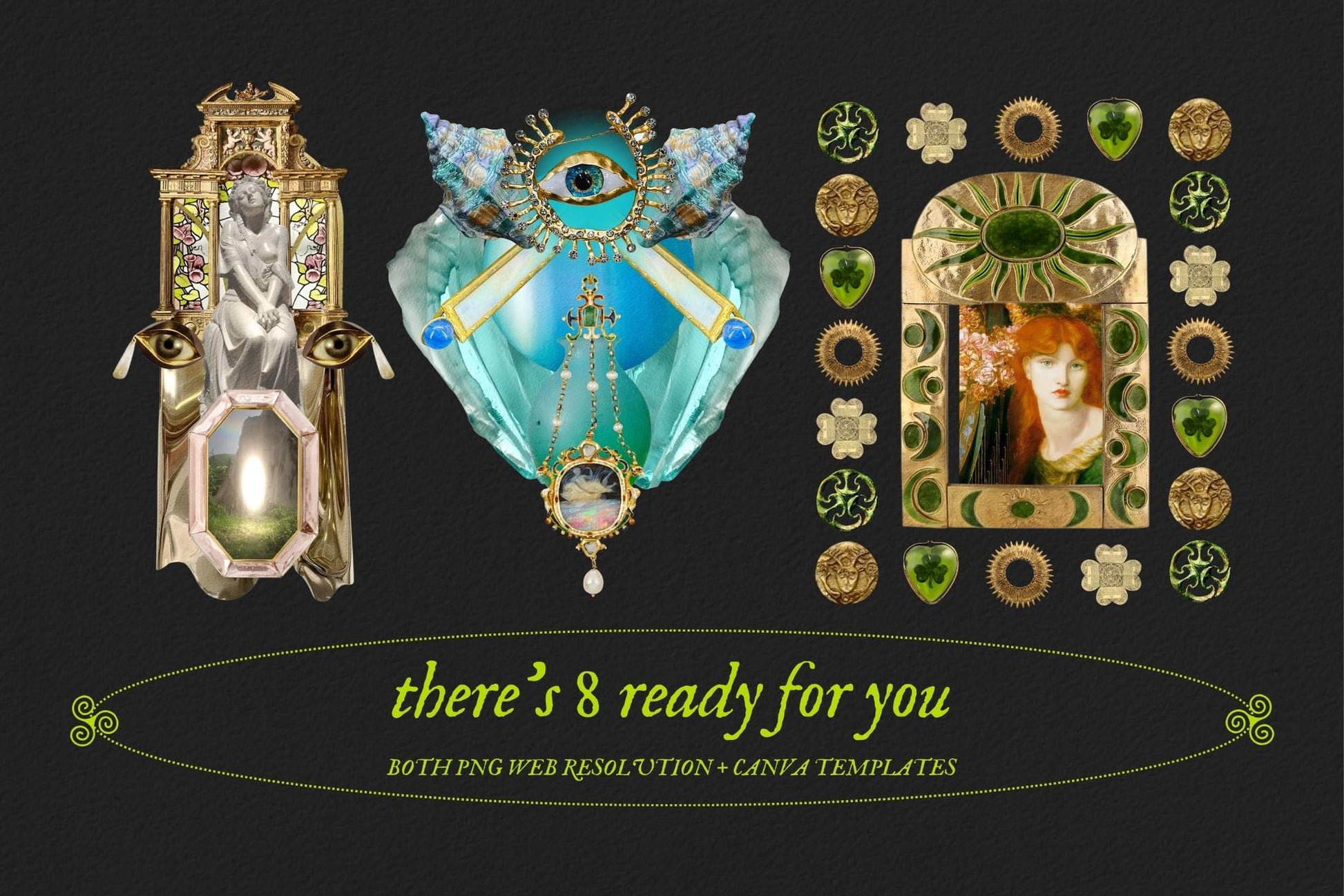 A digital collage kit made with love and intention for maximalists, collage artists, neurodivergent creatives and symbol-lovers who like their visuals intentional, eclectic and anything but beige. Saving you countless hours scouring the internet like magpie for trinkets.