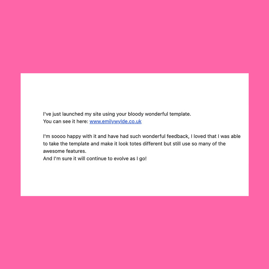 The world is your oyster, baby. Customise it in a day, or sink some hours and totally transform this already amazing foundation I've laid for you. CSS code is easy to learn, especially because I make sure mine is written beautifully.